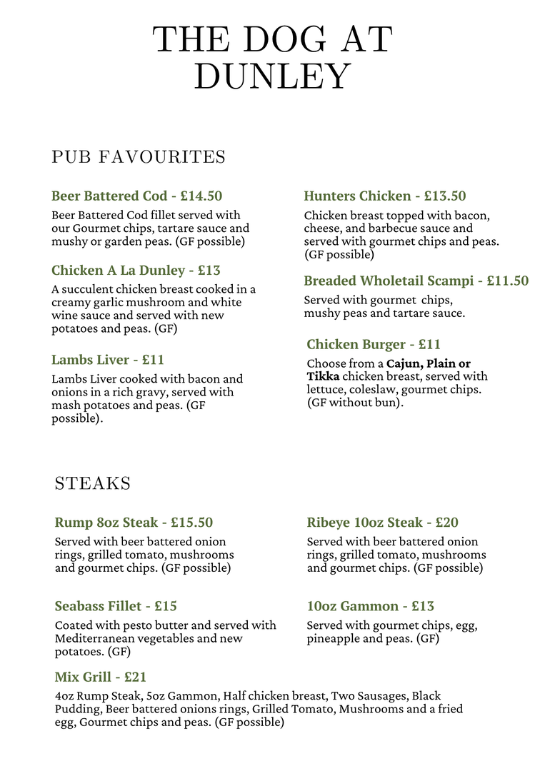 Our sunday menu has also been updated to bring you the best we have to offer...
